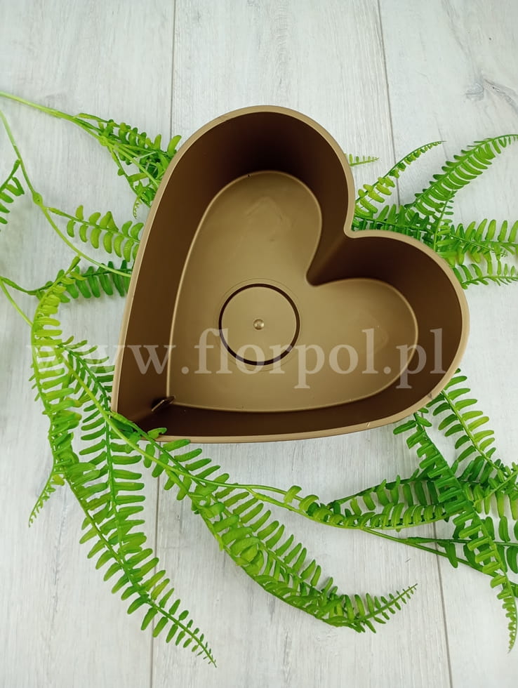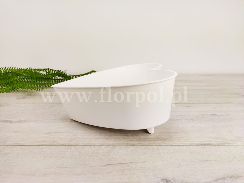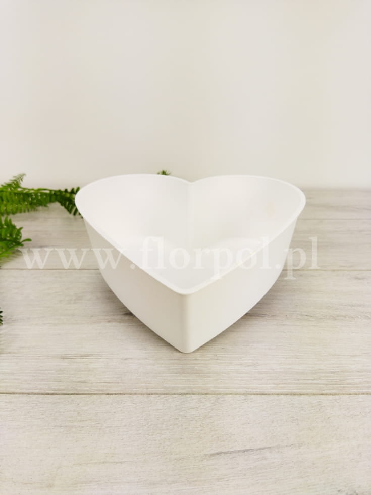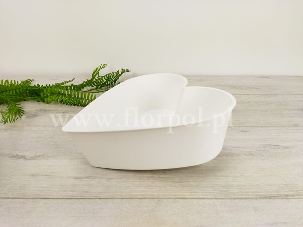 20cmx20cm; Plastikowe serce na nóżkach, podwyższone z jednej strony. Wspaniała baza wyjściowa do kompozycji florystycznych, dzięki zastosowanemu podwyższeniu każda kompozycja będzie idealnie wyeksponowana.