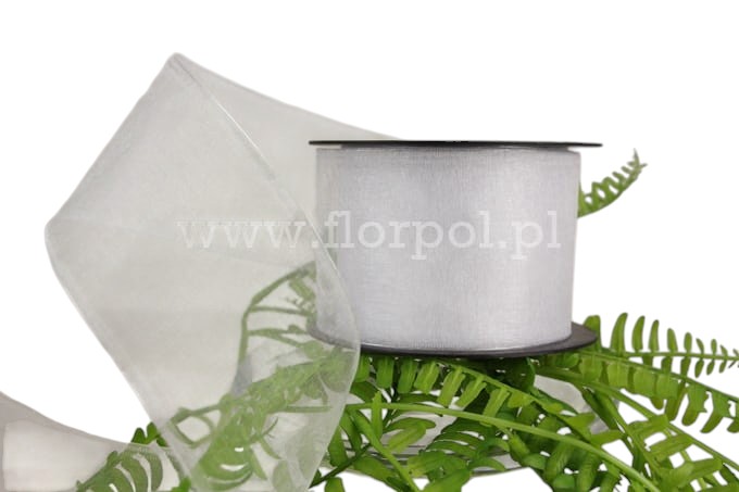 Wstążka – szyfon z drucikiem 7/9 1szt biały