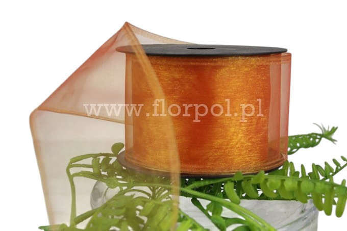 Wstążka – szyfon z drucikiem 7/9 1szt lśniący herbaciany