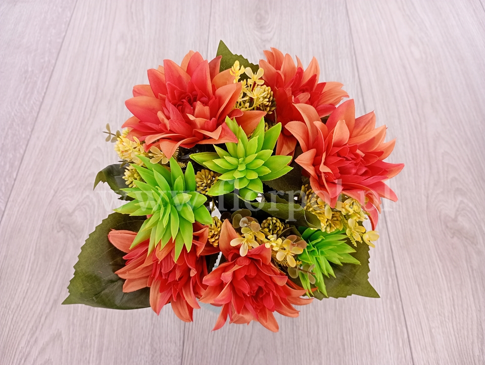 bukiet - dalia i sukulent 1szt pomarańcz (T60-24-1835)