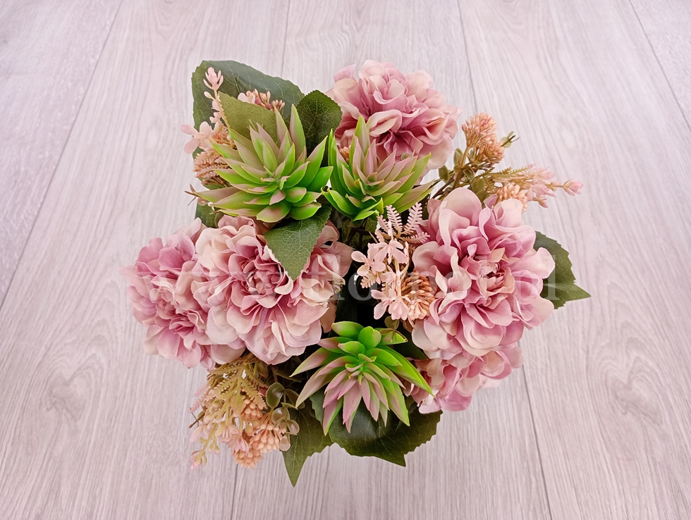 bukiet - dalia kulka i sukulent 1szt pud.róż (T60-24-1834)