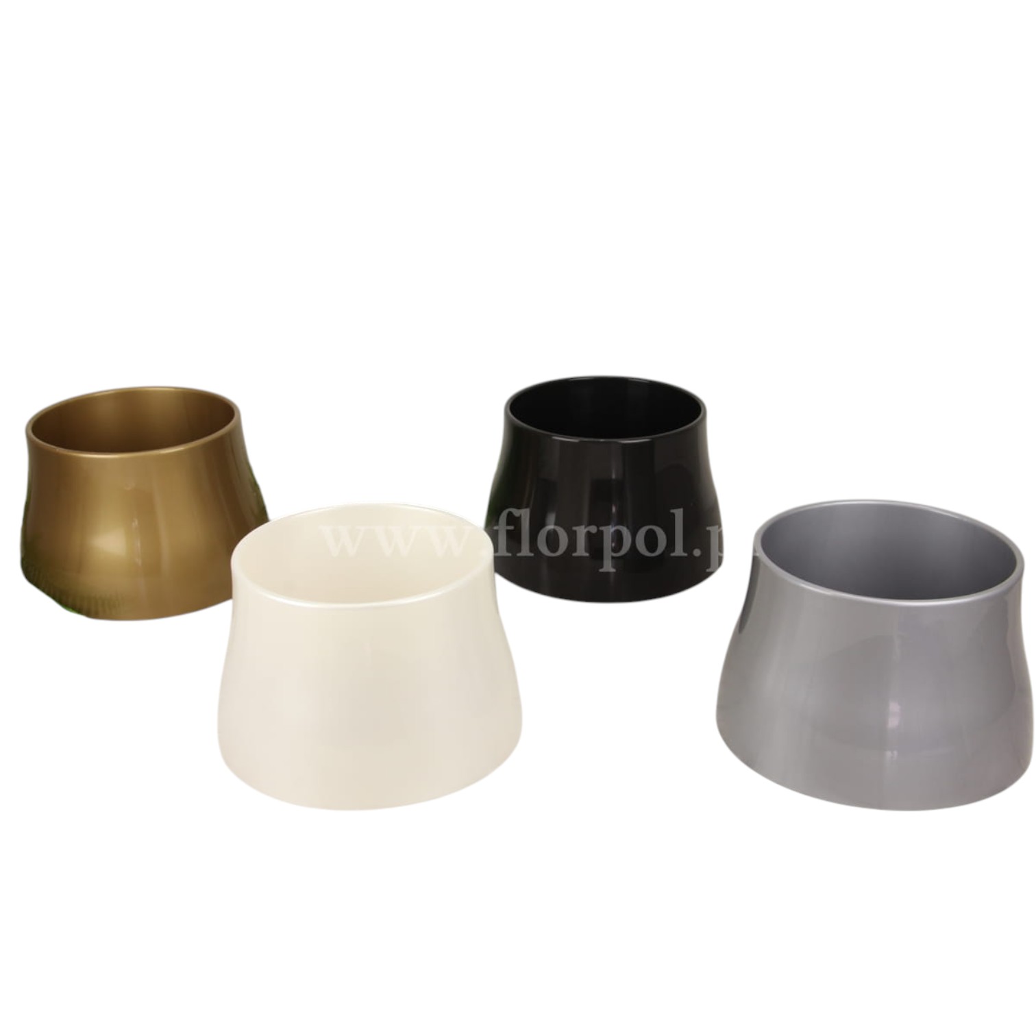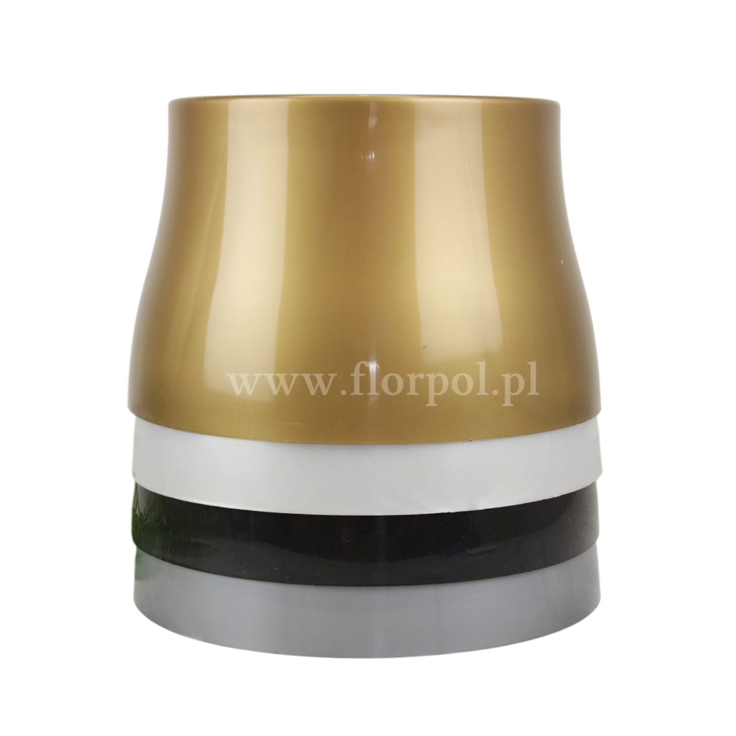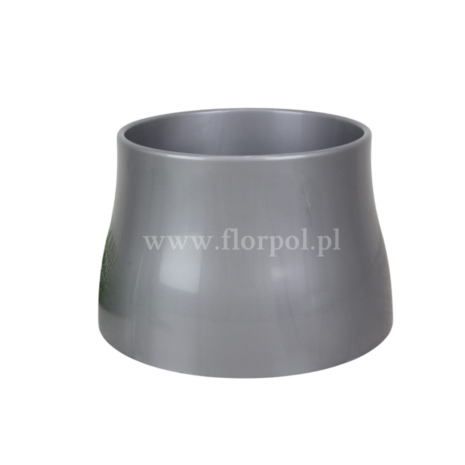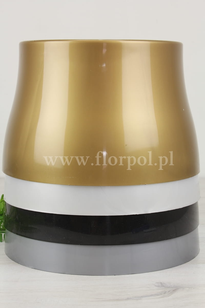 wym zewnętrzne: wys 15,5cm, śr góra 19,5cm, śr dół 24cm; wym wewnętrzne: śr 18,3cm, gł 14,5cm; Nowoczesny wzór donicy cmentarnej – prosta, a zarazem bardzo elegancka forma pasująca do każdego rodzaju nagrobnej płyty.