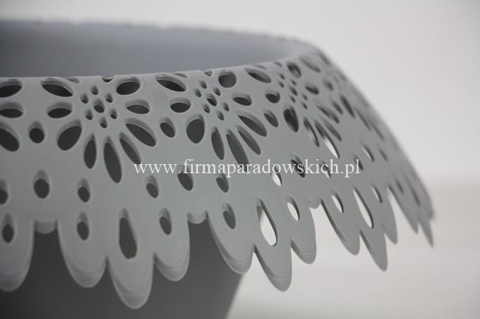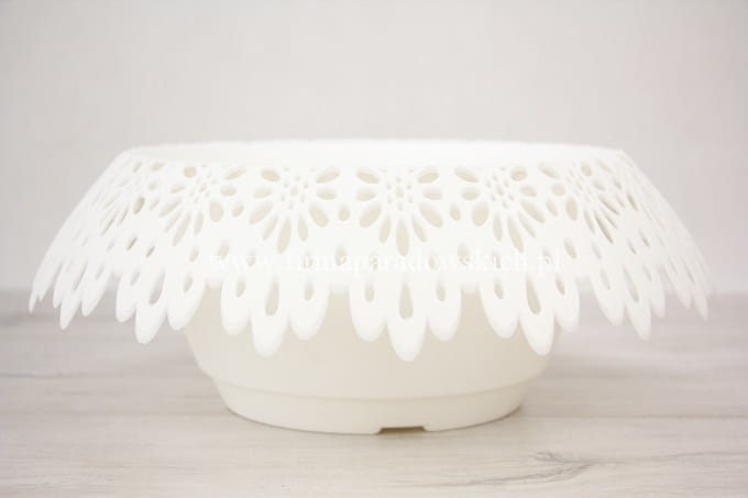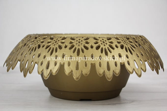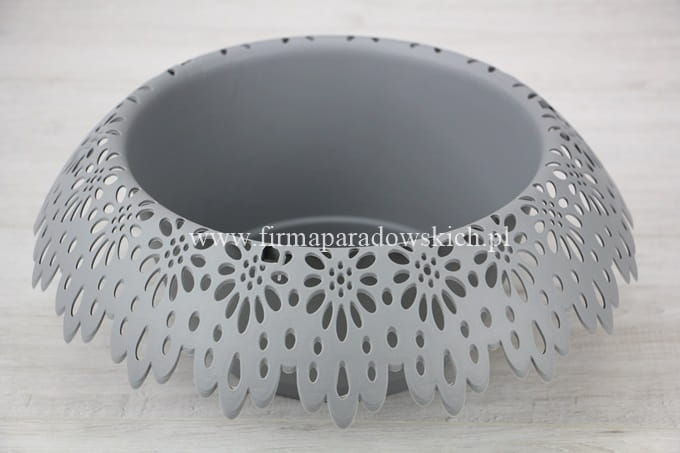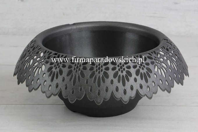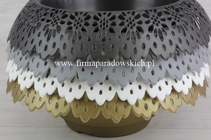 śr zew 30cm, śr wew 19cm, gł 11cm; Plastikowa doniczka z nowej kolekcji Modena przepiękny koronkowy kołnierz oraz przyciągające uwagę wzornictwo. Przy zakupie 10szt w jednym kolorze – 5% rabatu.