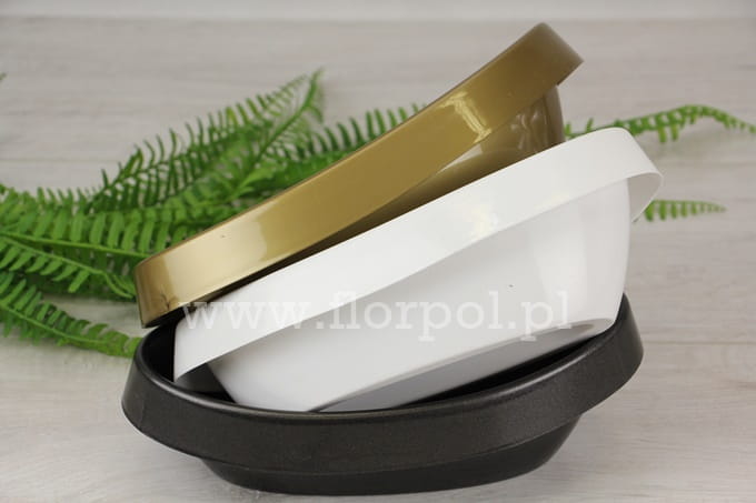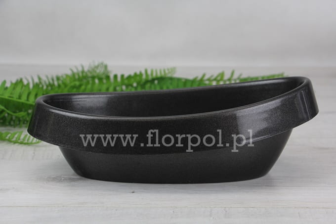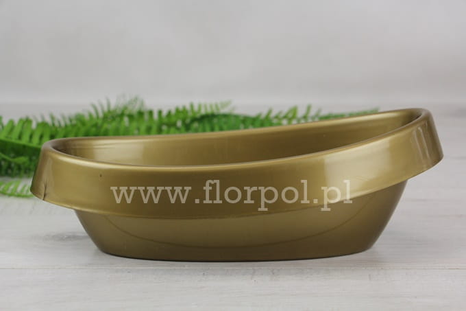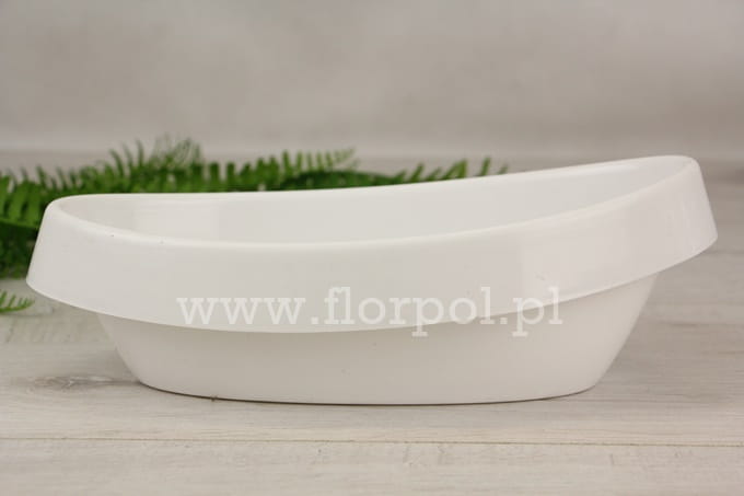 22,5cm x 10cm x 5cm; Gazon plastikowy z szerokim kołnierzem o ciekawym kształcie, przypominającym dziecięcą wanienkę. Do kompozycji florystycznych.