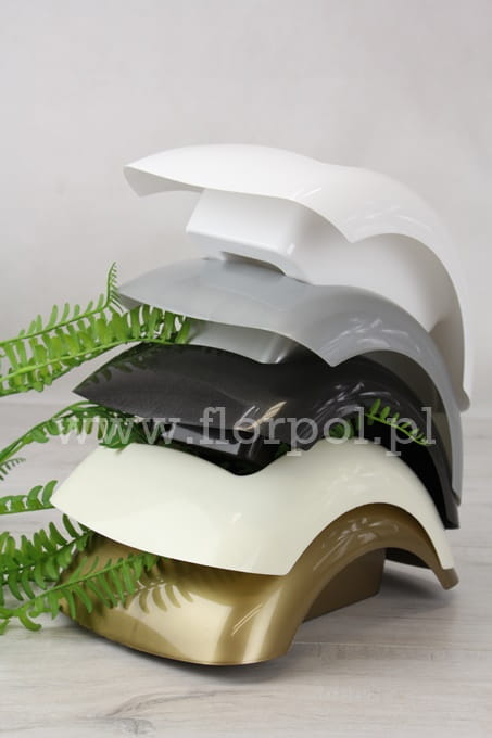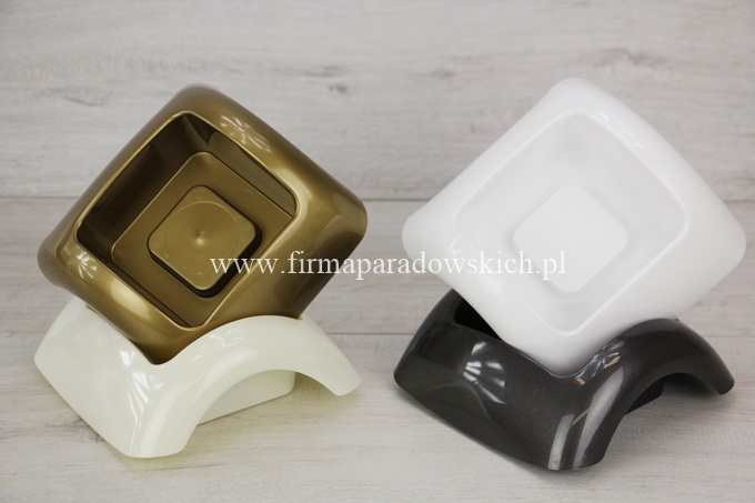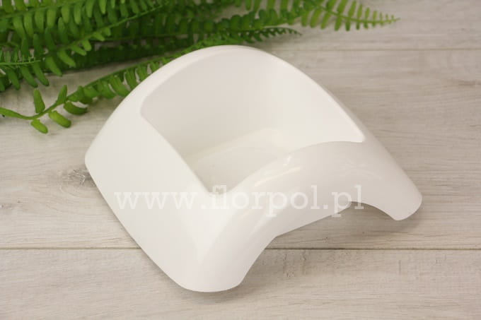 wym zewnętrzne 15cm x 15cm, wym wewnątrz 9,5cm x 10cm, gł 5cm. Naczynie kompozycyjne wykonane z wysokogatunkowego plastiku. Stworzona w nim kompozycja florystyczna, będzie wyglądała wyjątkowo nowocześnie oraz elegancko.