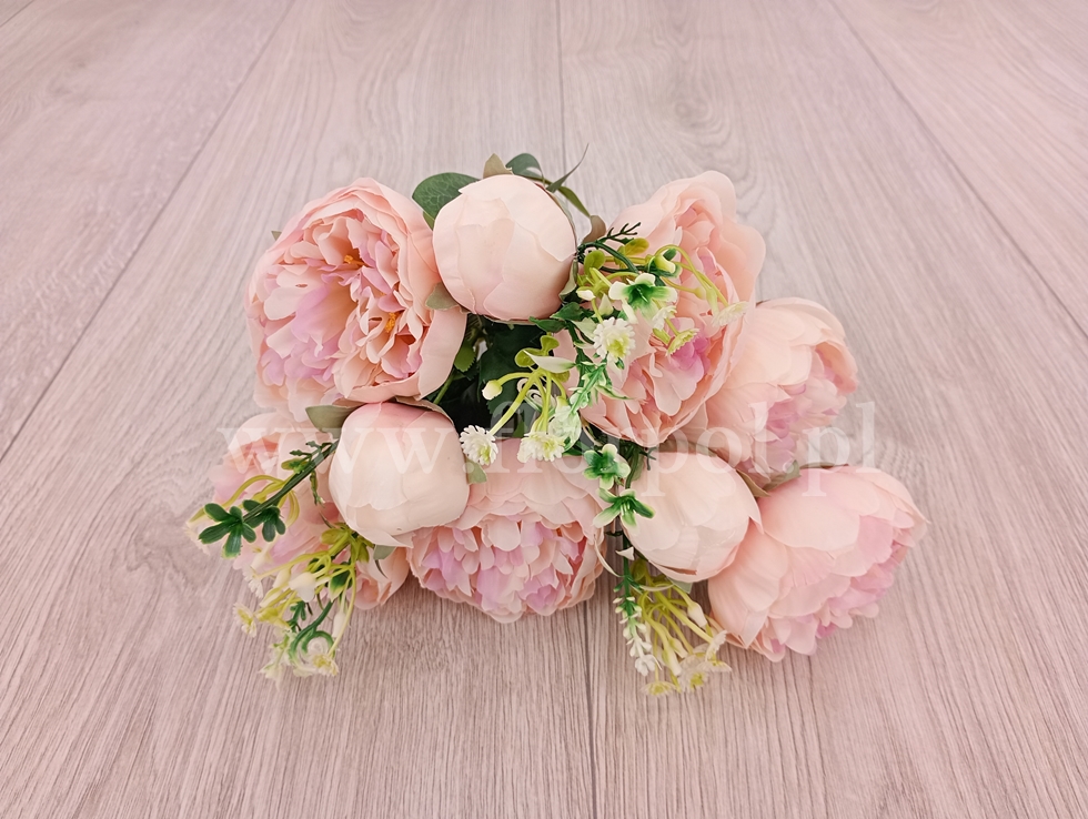 peonia bukiet z zielonymi dodatkami 1szt delikatny róż/ecru/lila