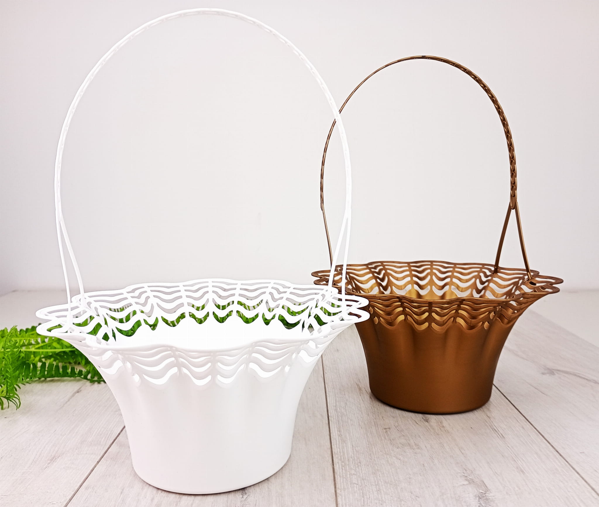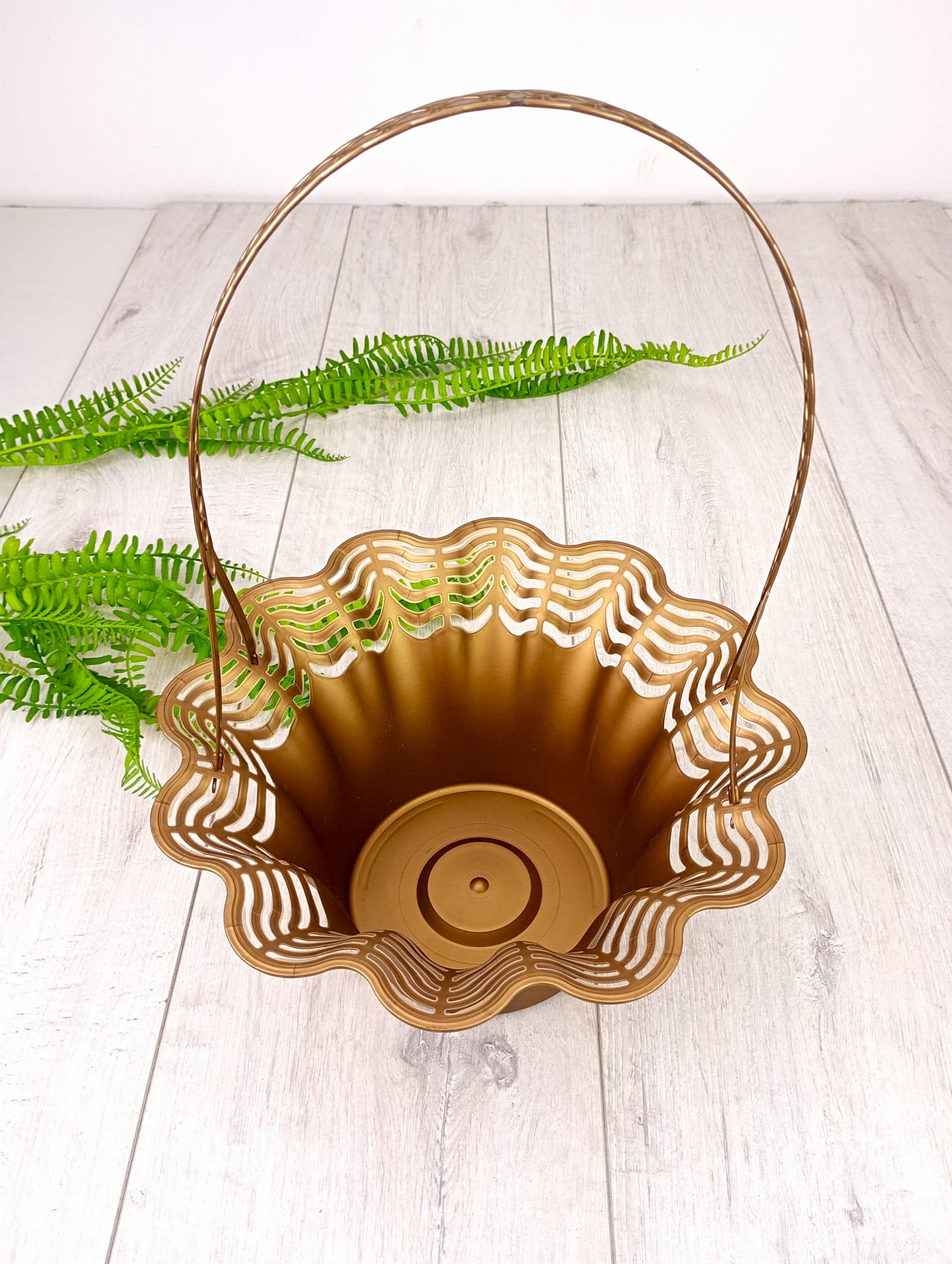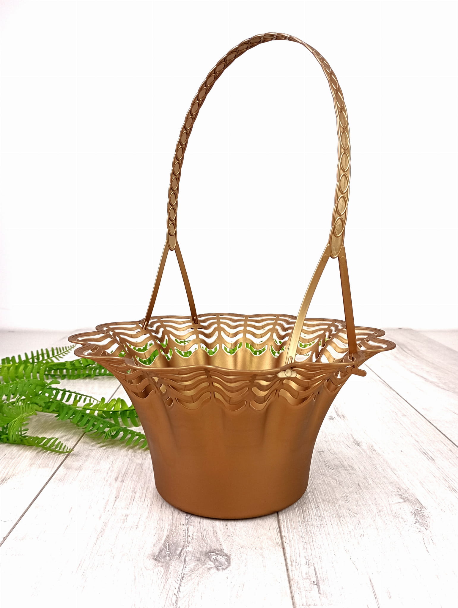 plastikowy koszyczek z kryzą i rączką 1szt złoty