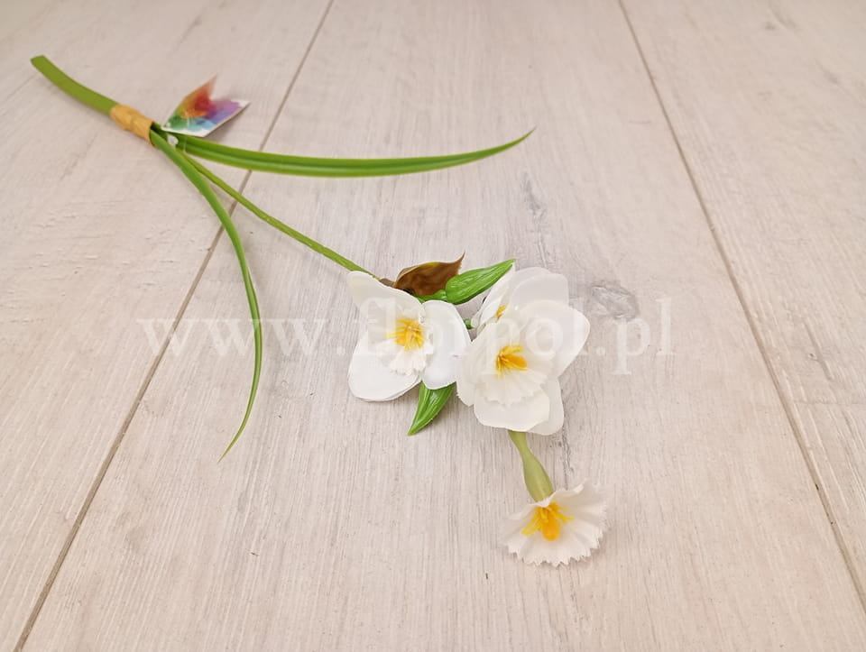 pojedynczy kwiat żonkila z trawą 3szt ecru (KWZ1461)