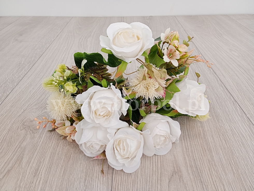 róża, czasnek i dodatki w bukiecie 1szt biały (KWBUK000912)