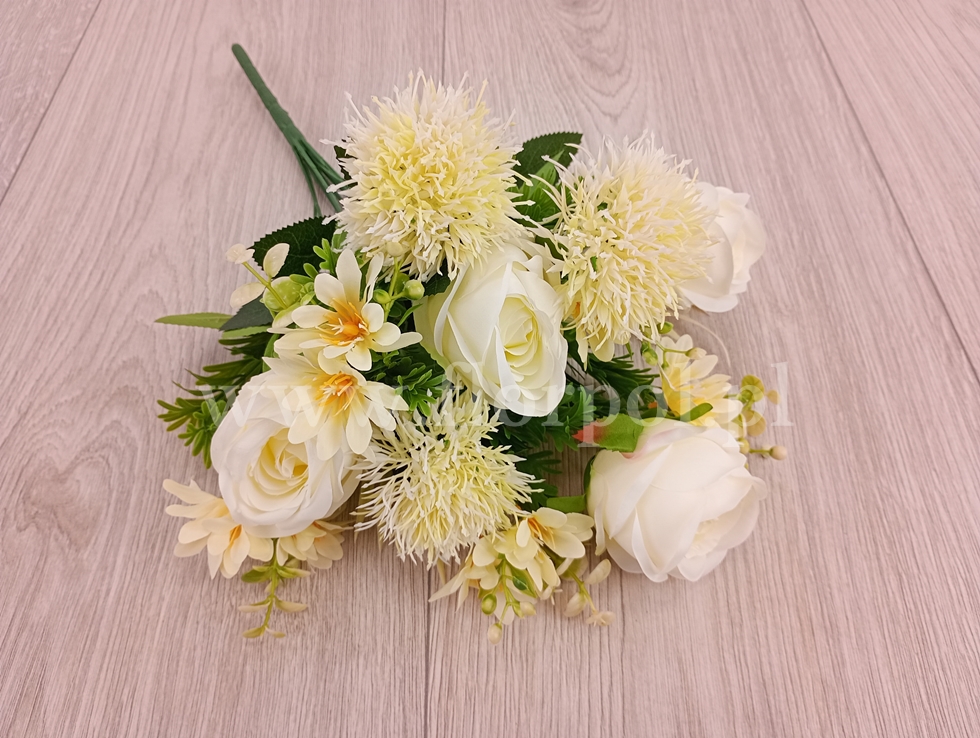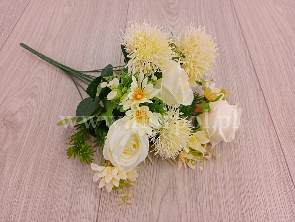 róża, czosnek i rumianek - bukiet 1szt ecru (BUK1002)